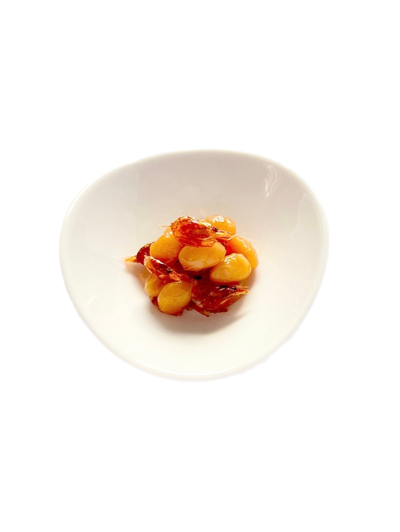 色鮮やかで香ばしく炊き上げた琵琶湖産のスジエビと、艶やかかつ柔らかい北海道産大豆のコラボレーションは、是非一度ご賞味いただきたい逸品です。